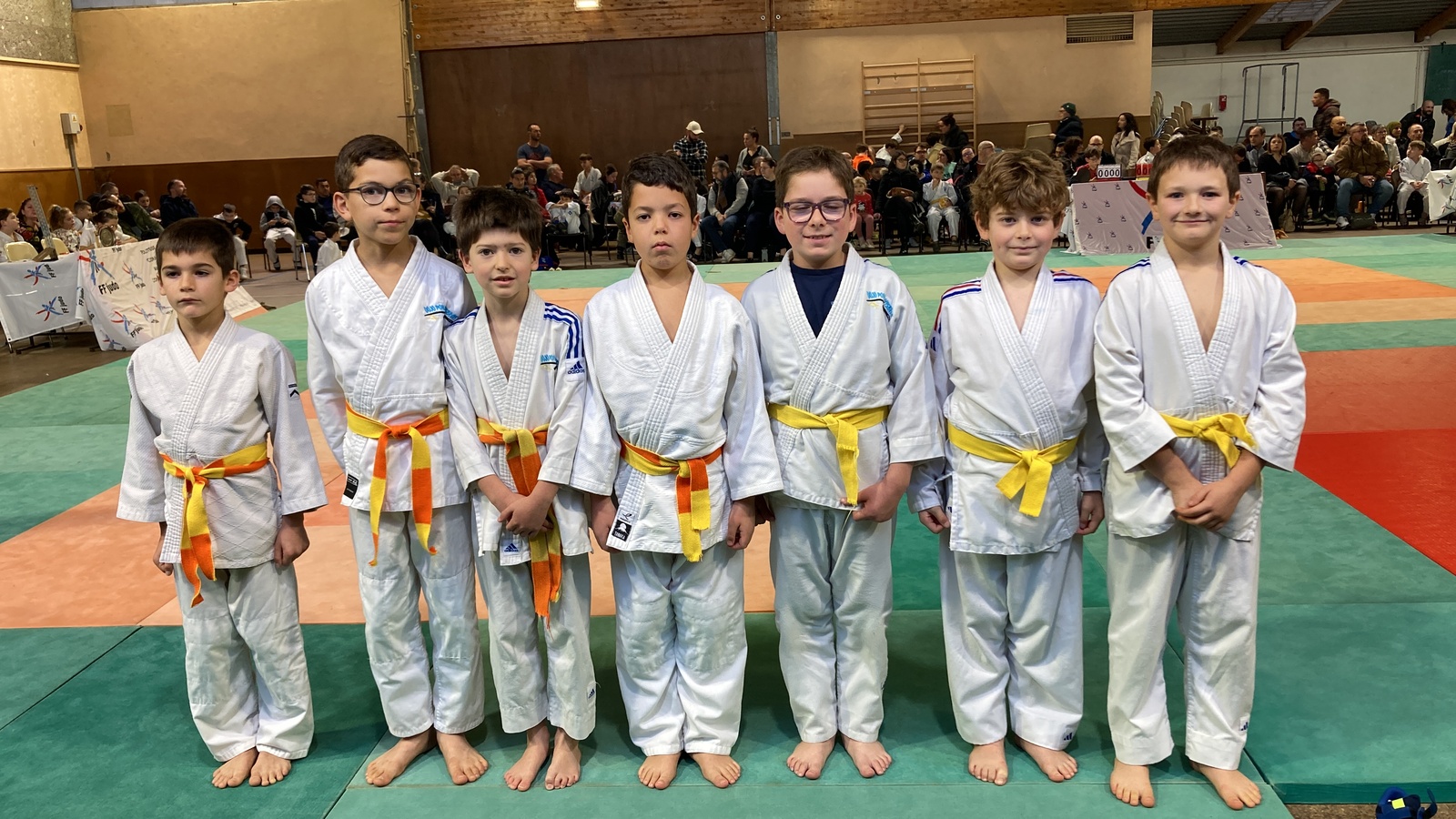 Dimanche 30 novembre, c'est au gymnase Vilalta à Peyrins que les jeunes Pont D'isérois avait rendez-vous pour le premier district nord de la saison. Cette rencontre organisé par la comité départemental de judo et réservée uniquement au club du nord Drôme-Ardèche a regroupé 130 mini-poussins (2018/2019) et 120 poussins (2016/2017) et une quarantaine de benjamins (2014/2015). Pour le Dojo, 7 mini-poussins et 8 poussins et 2 benjamins ont participé à cette animation à base de randoris (combats) avec un arbitrage adaptée à chaque tranche d'âges. Une médaille souvenir récompensait chaque les judoka participant. Prochain rdv pour tous ces jeunes l'entraînement de Noël qui aura lieu le 17 décembre à Pont De L'isère.